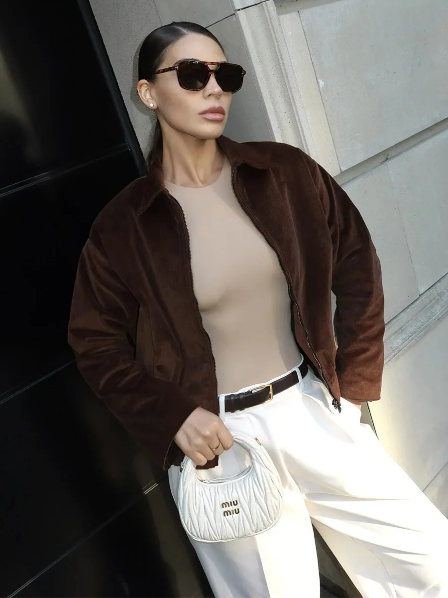 - Vintage Corduroy Charm – Classic retro brown corduroy gives timeless autumn style vibes.